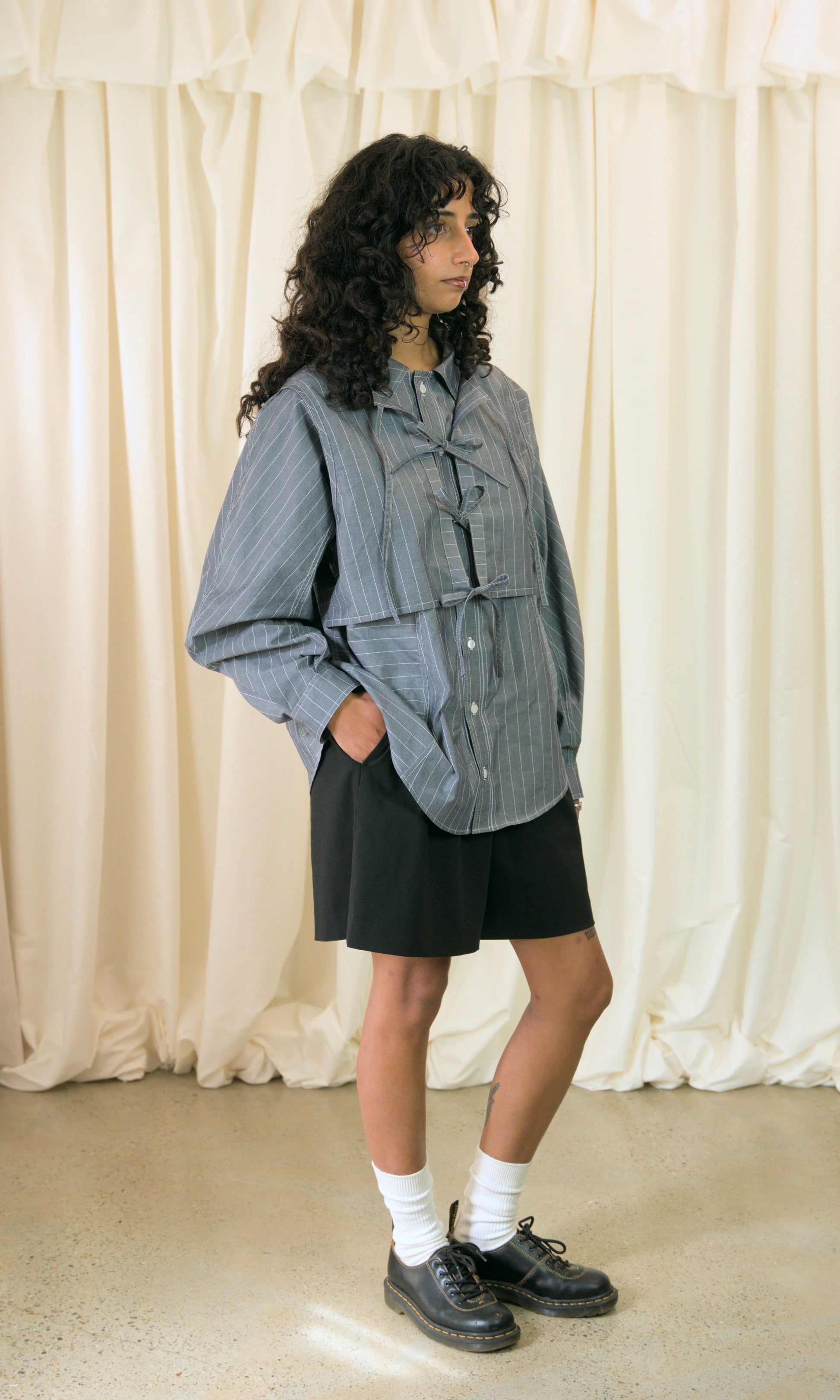 A collaborative work from Also Known As & Mercury, the Staple Shirt is a playful reminder to not take yourself too seriously, and to be experimental in your approach to wearing clothing. This garment is sewn in house by Mercury, using dead-stock and cotton fabrics.